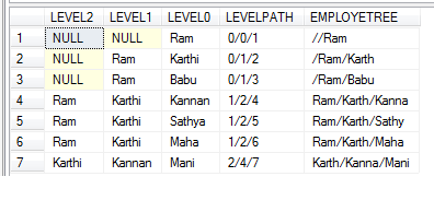 ,CAST (ISNULL(L3.EmpName,'') AS VARCHAR(5))+'/' + CAST(ISNULL (L2.EmpName,'') AS VARCHAR(5))+'/' + CAST(ISNULL (L1.EmpName,'') AS VARCHAR(5)) AS EMPLOYETREE